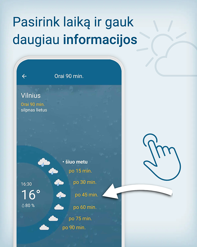 Nori žinoti orų kaitą kas 15 minučių? Būtent tai rasi mūsų 90 minučių prognozėje.