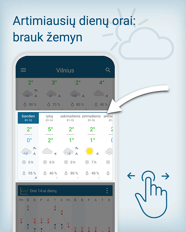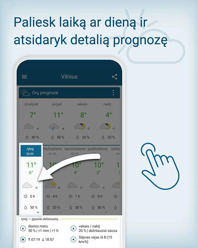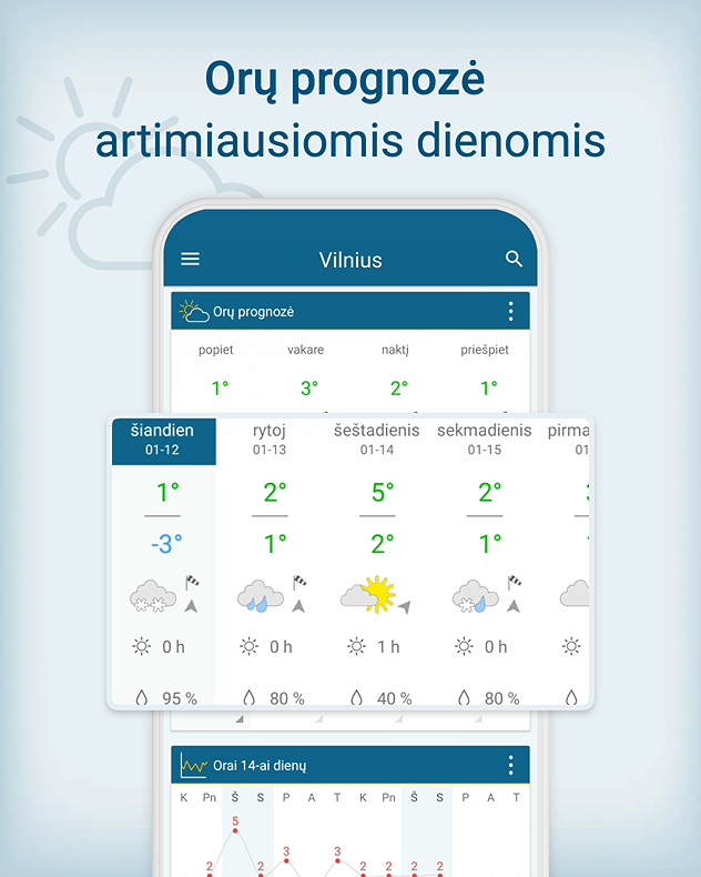 Mūsų tiksli prognozė pateikia išsamią informaciją apie saulę, vėją ir lietų – tiek tavo dabartinėje, tiek bet kurioje pasaulio vietoje, kurią pasirinksi.