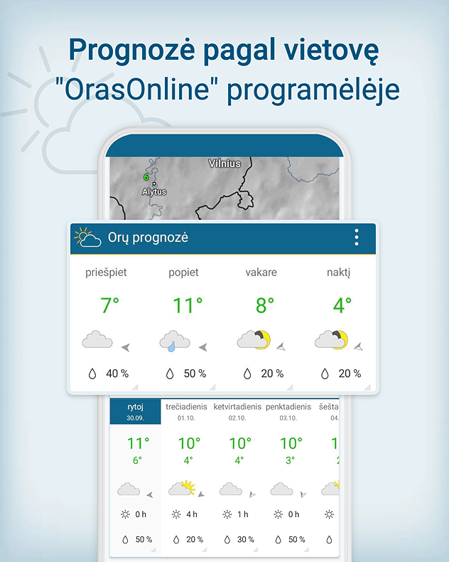 Kokie orai bus …? Prognozė pagal vietovę