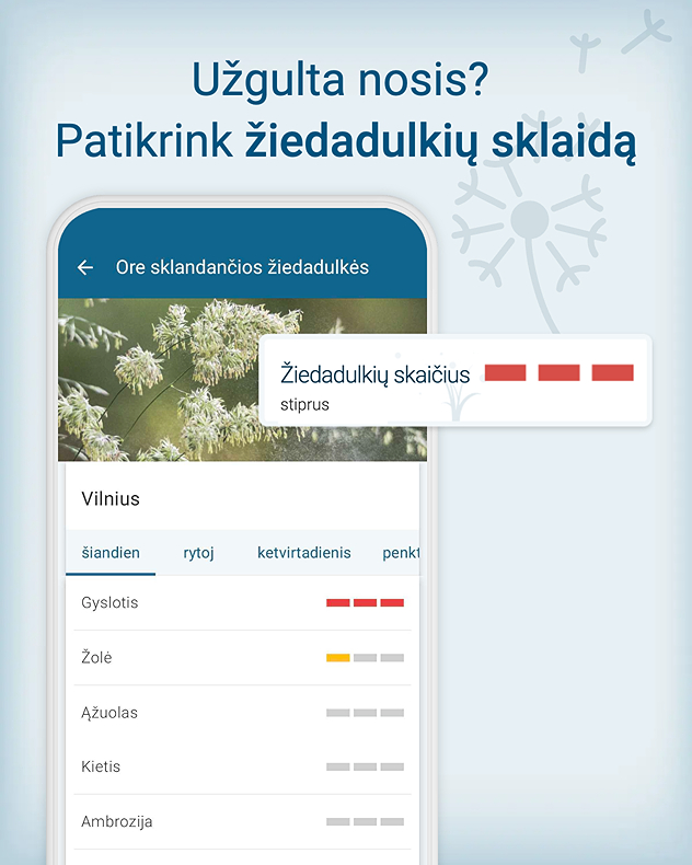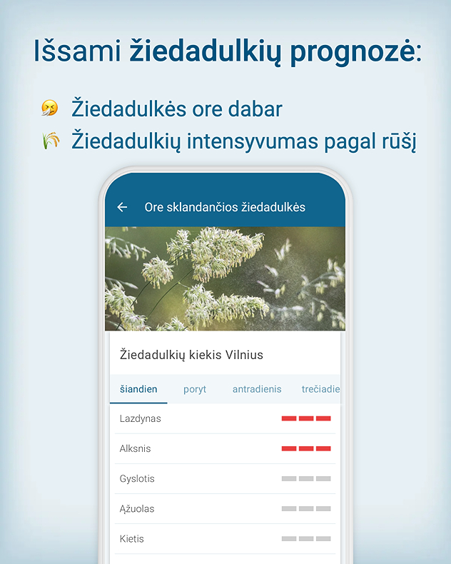 Orų prognozė ir žiedadulkių informacija – puikus derinys